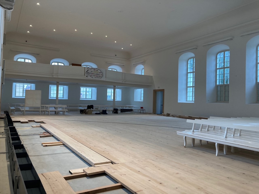 I do not use the term journey lightly. Even in the year 2021, it is hard to get to Herrnhut. From Erfurt, it took three trains, a bus, and the better part of a day. This time of year, there is very little tourism. The town is small, and is centered around Zinzendorf Platz, the square formed originally by the church hall, called Saale, the Widow's house, the Single Brothers House, the schools, etc. The Saale is undergoing renovation, but we could still take a peek.